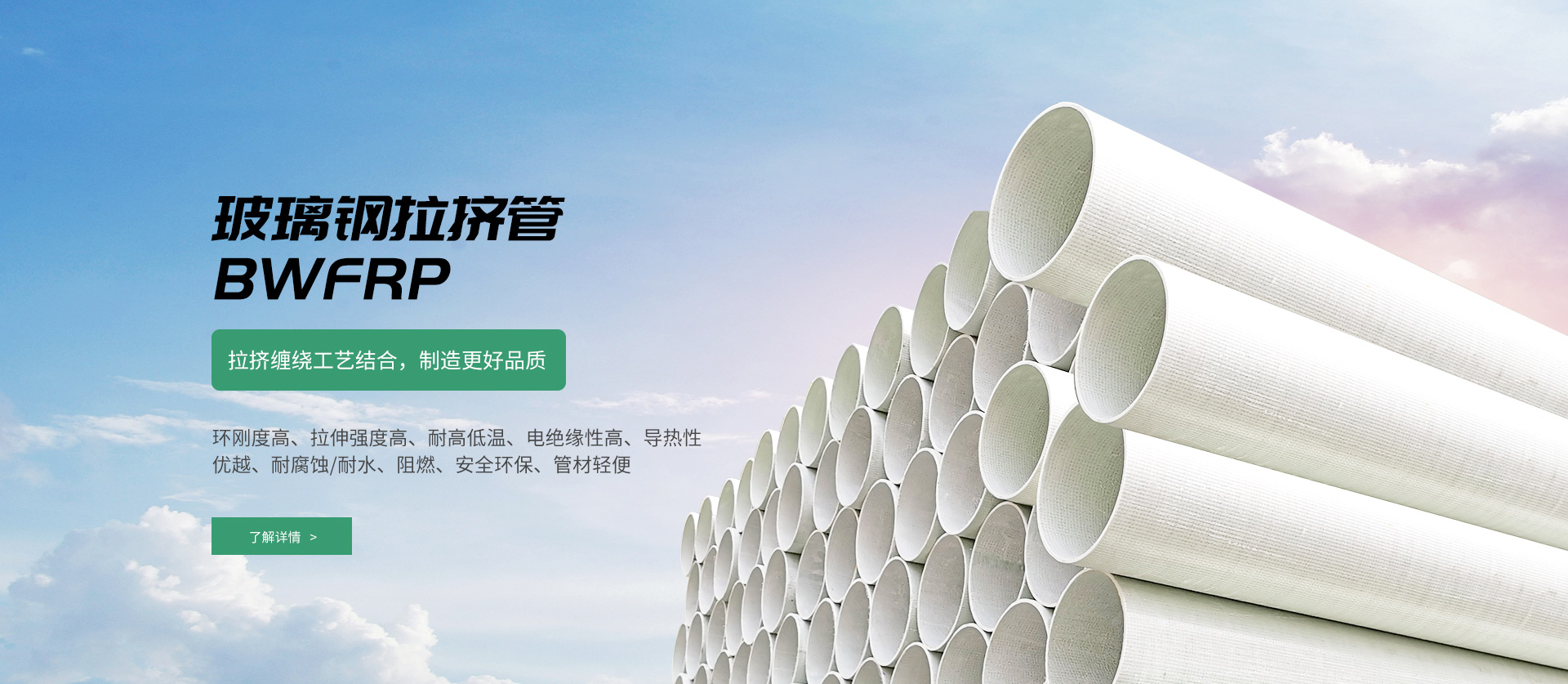 纖維編繞拉擠電纜保護(hù)管(BWFRP),是一種新型電纜導(dǎo)管材料。采用高性能纖維復(fù)合材料和環(huán)氧樹脂為原材料,由內(nèi)編繞層、中間層、外編繞層構(gòu)成,通過拉擠工藝成型。這種新型的電纜導(dǎo)管產(chǎn)品具有傳統(tǒng)管材無法比擬的優(yōu)點(diǎn),是取代傳統(tǒng)玻璃鋼管的一種結(jié)構(gòu)與性能俱佳的產(chǎn)品,適用于電力電纜及通信電纜的保護(hù)套管使用。